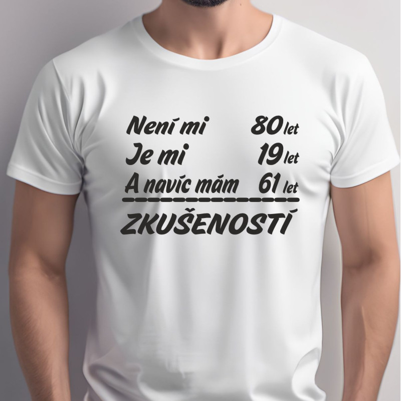Pánské bavlněné tričko s potiskem: Pánské tričko - Není mi 80 let. Ideální dárek k 80. narozeninám.