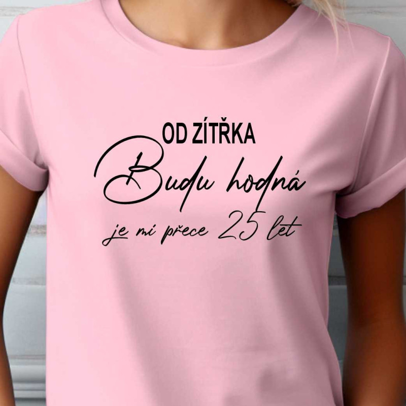 Dámské tričko s vtipným potiskem: Od zítřka budu hodná je mi přece 25 let. Tričko je skvělé jako dárek k 25 narozeninám, udělá radost, rozveselí celou slavu. Kvalitní bavlněné tričko s humorným nápisem je originální a nebude také památkou na tuto radostnou událost.