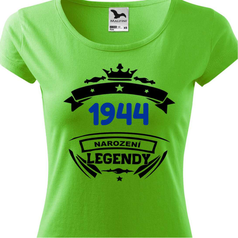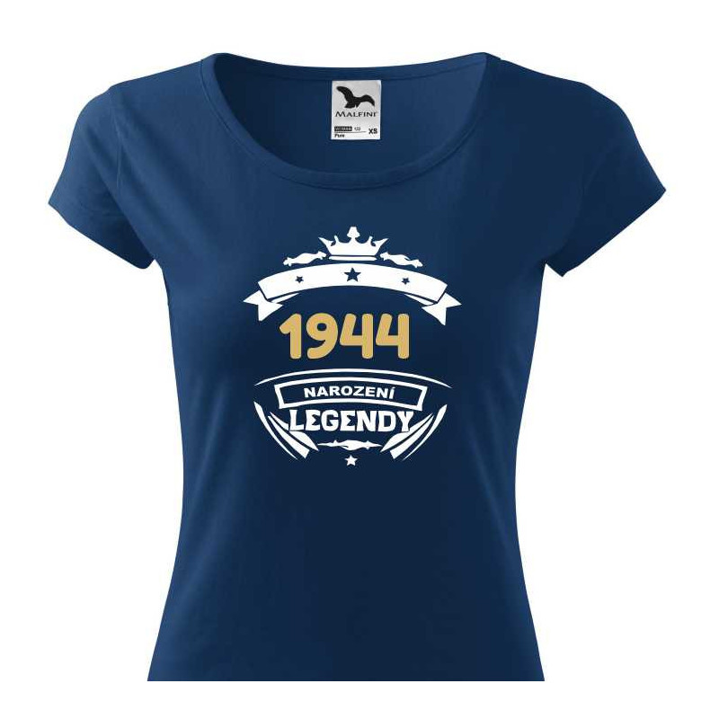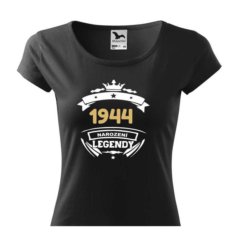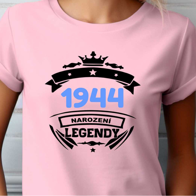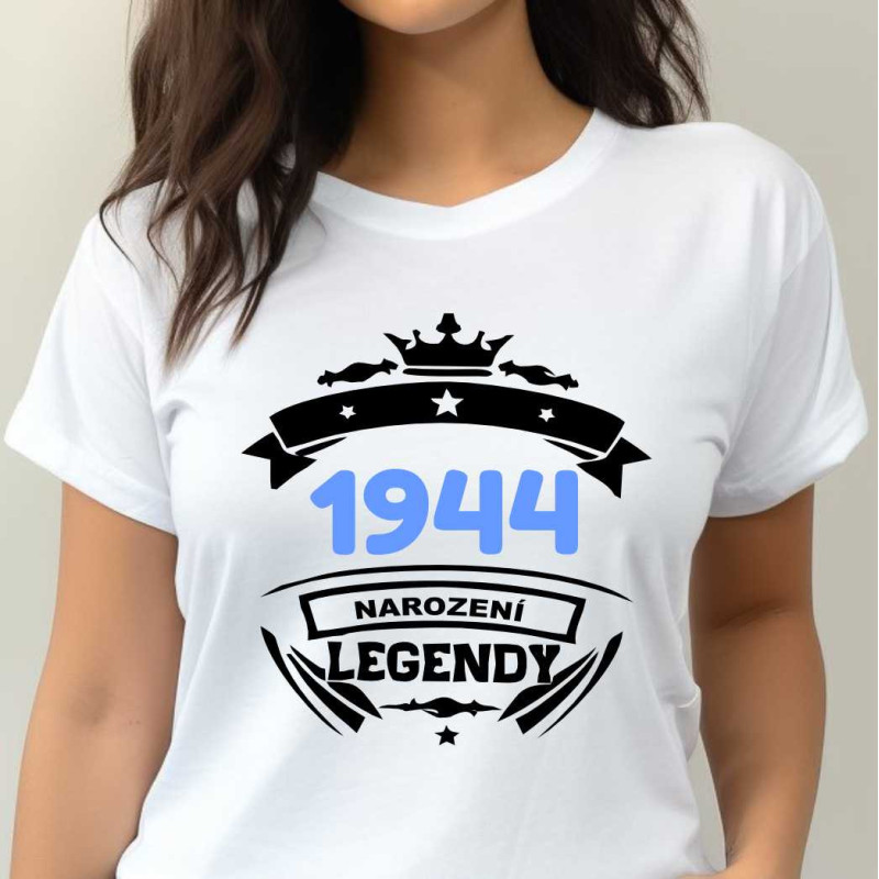 Dámské tričko s potiskem "1944 narození legendy" je originálním dárkem k narozeninám pro ženu narozenou v roce 1944. Tričko s potiskem vytvoří příjemnou náladu, vykouzlí úsměv a bude vzpomínkou na člověka, který tričko daroval.