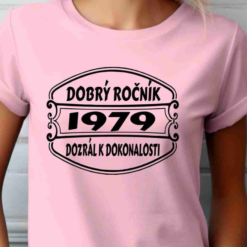 Dámské tričko s potiskem: Dobrý ročník 1979 dozrál k dokonalosti. Tričko je ideální k oslavě 47. narozenin a také jako dárek k této příležitosti. Udělejte radost osobě blízké skvělým dárkem, který pootěší a udělá oslavu 47. narozenin dokonalou.