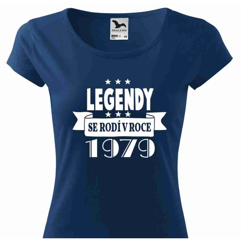 Dámské tričko s potiskem: Legendy se rodí v roce 1979. Tričko je ideální k oslavě 47. narozenin a také jako dárek k této příležitosti. Udělejte radost osobě blízké skvělým dárkem, který pootěší a udělá oslavu 47. narozenin dokonalou.