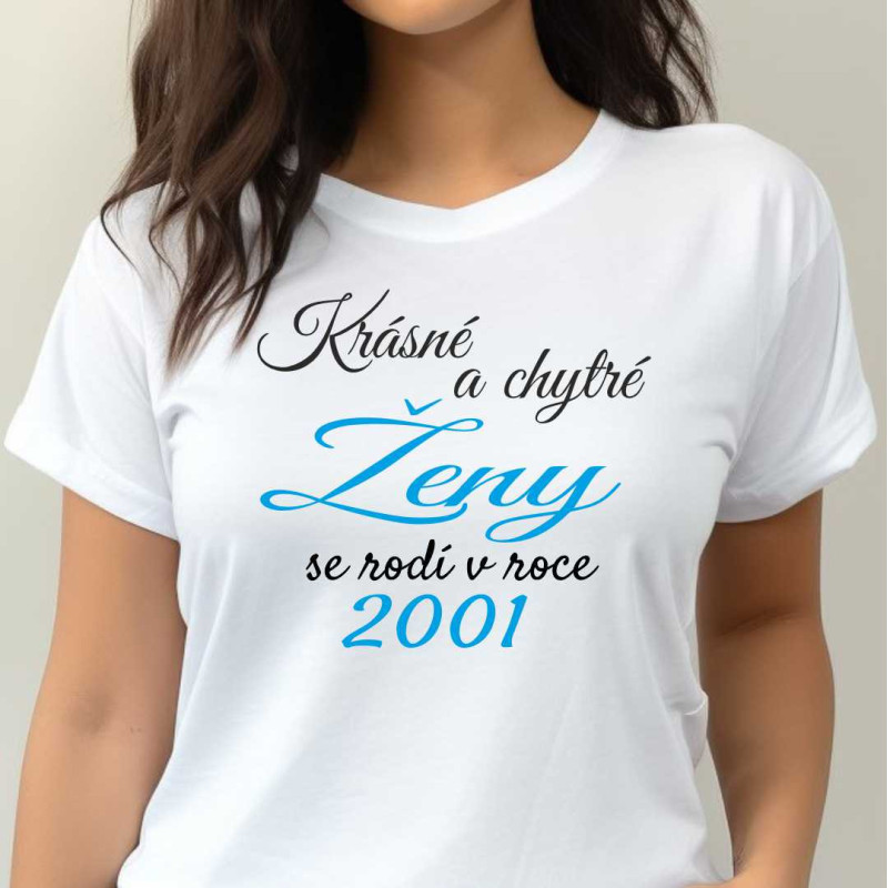 Dámské bavlněné tričko s potiskem, ideální pro ženu narozenou v roce 2001. Tričko je skvělé k narozeninové oslavě a také jako dárek k narozeninám.