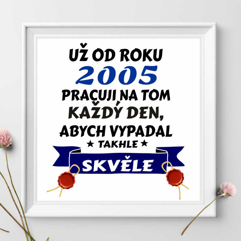 Obraz je vtipným a originálním dárkem k narozeninám pro muže narozeného v roce 2005. Tento design s humorným textem skvěle vystihuje mladého oslavence, který si zakládá na svém vzhledu a stylu.