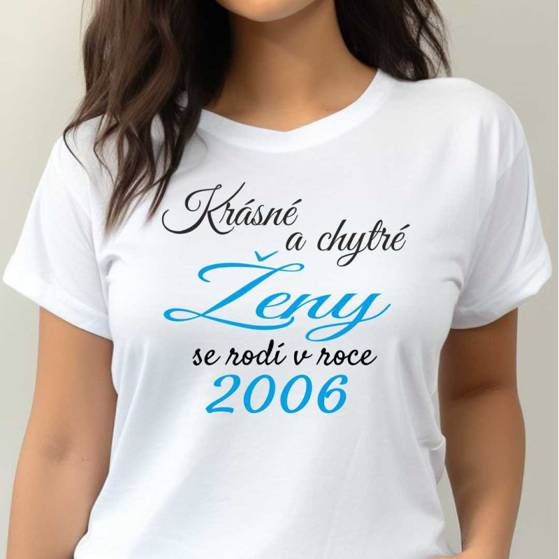 Dámské bavlněné tričko s potiskem, ideální pro ženu narozenou v roce 2006. Tričko je skvělé k narozeninové oslavě a také jako dárek k 20. narozeninám.