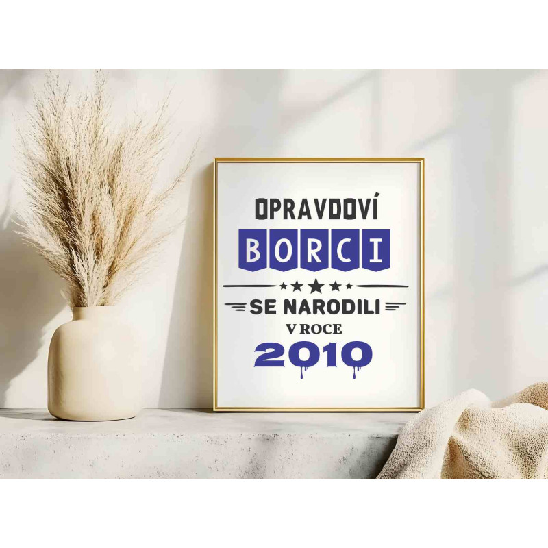 Oslavte 16. narozeniny ve velkém stylu! Tento originální fotoobraz s nápisem „Opravdoví borci se narodili v roce 2010“ je perfektním dárkem, který zdůrazní výjimečnost oslavence a dodá jeho pokoji šmrnc.