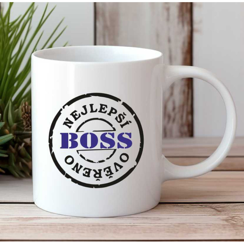 Hrníček s potiskem "Nejlepší boss, ověřeno" je ideální dárek pro vašeho šéfa. Udělejte radost svému nadřízenému hrníčkem, ze kterého je radost pít kafe, který vytvoří příjemnou náladu a vykouzlí úsměv. Dárek pro šéfa k jakékoliv příležitosti.