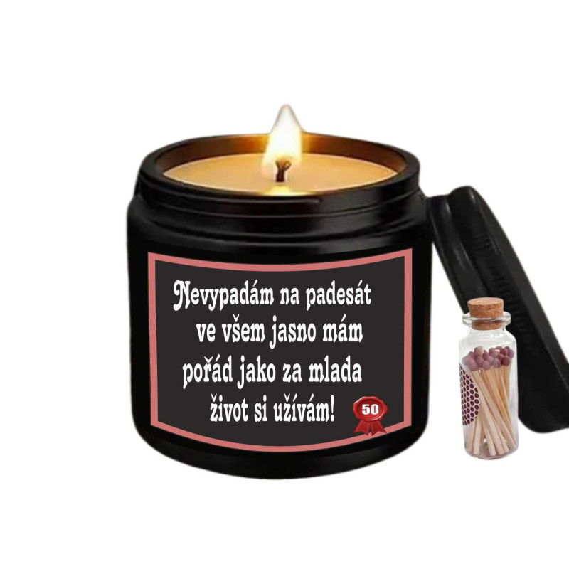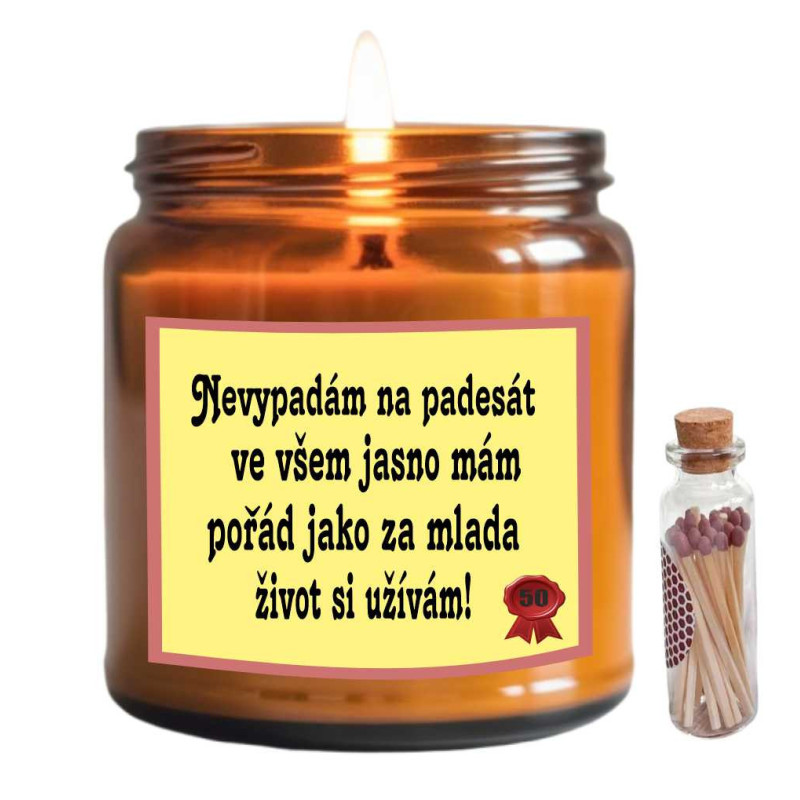 Narozeninová vonná svíčka k 50. narozeninám – "Nevypadám na padesát"