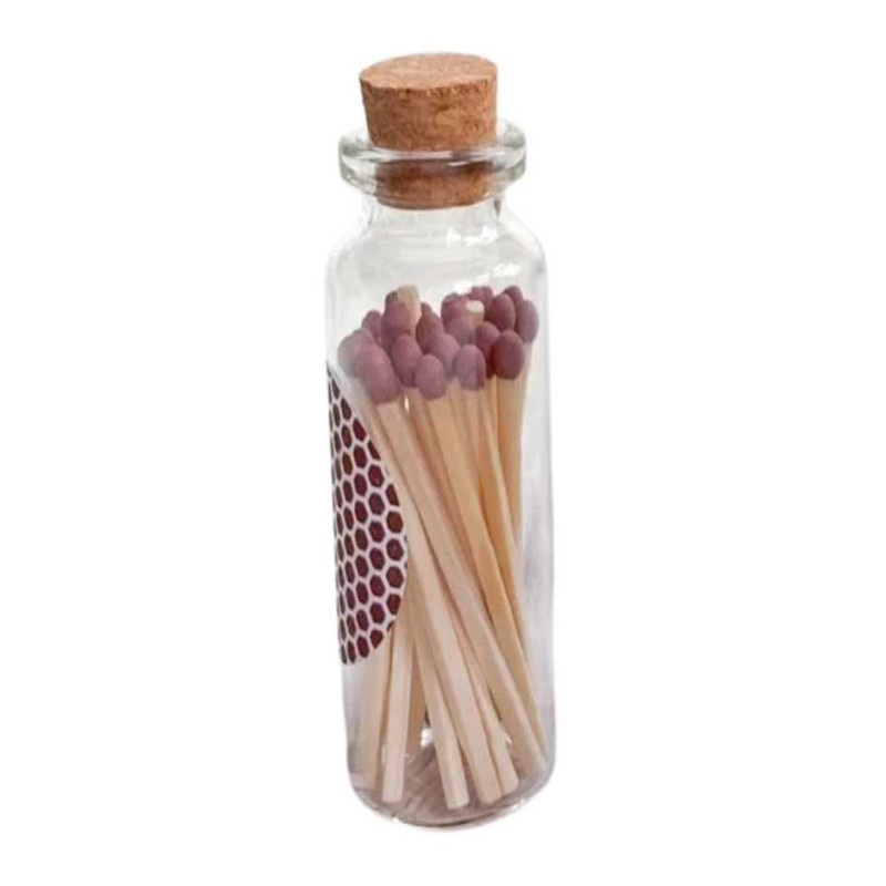 Svíčka je zabalena v okrasné krabičce s lahvičkou se zápalkami a škrtátkem.