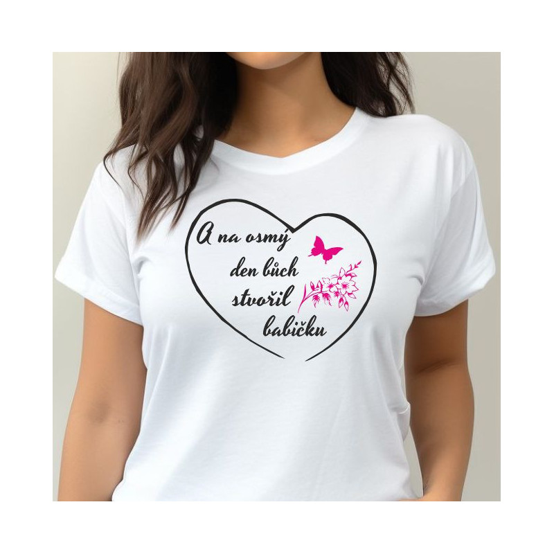 Chcete své babičce ukázat, jak moc ji milujete, a zároveň ji potěšit originálním a vtipným dárkem? Dámské tričko „A na osmý den, Bůh stvořil babičku“ s potiskem ve tvaru srdce je dokonalou volbou! Ideální dárek pro každou příležitost – Vánoce, narozeniny, svátek, nebo prostě jen proto, že je vaše babička úžasná.