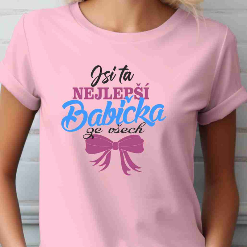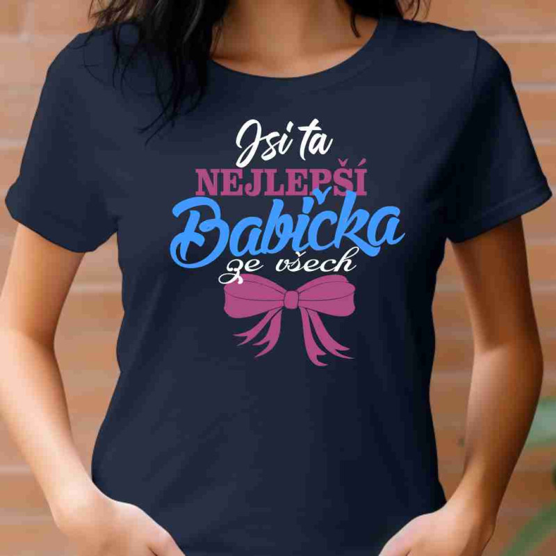 Dámské bavlněné tričko s krátkým rukávem s nápisem: Jsi ta nejlepší babička ze všech. Udělejte babičce radost tímto tričkem, které je ideální jako dárek k Vánocům, narozeninám nebo jen tak pro radost. Udělá Vaší babičce velkou radost a bude ho nosit kdykoliv bude příležitost.
