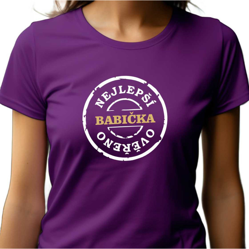 Dámské tričko s potiskem: Nejlepší babička ověřeno. Tričko je skvělé jako dárek k Vánocům, svátku nebo jen tak pro radost pro babičku. Udělejte babičce radost tímto bavlněným tričkem s potiskem, které zaručeně potěší.