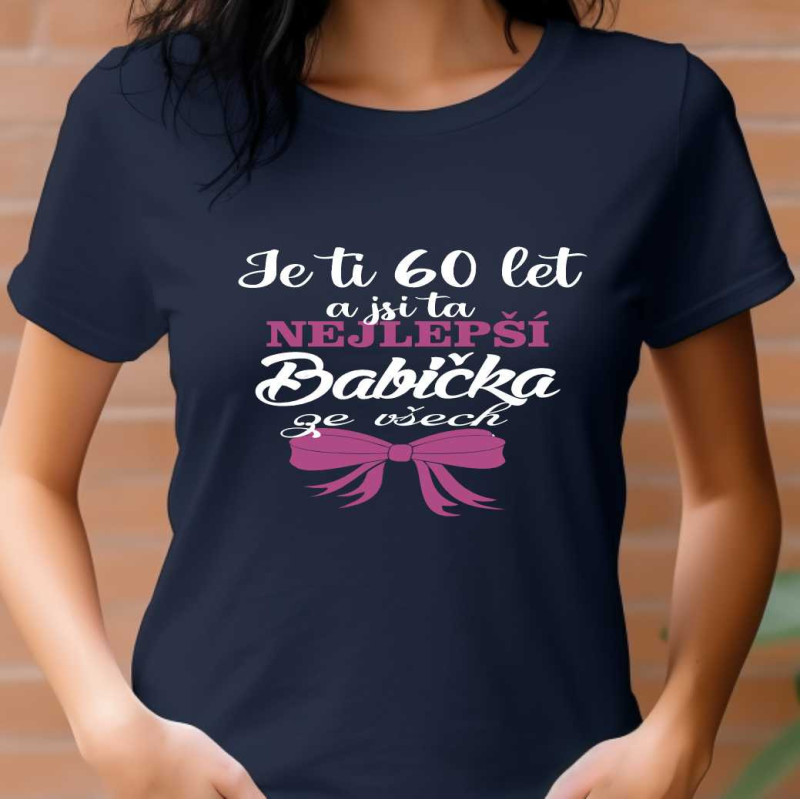 Dámské tričko s vtipným potiskem: Je ti 60 let a jsi ta nejlepší babička ze všech je originálním dárkem k 60. narozeninám pro babičku. Tričko s potiskem vytvoří příjemnou náladu, vykouzlí úsměv a bude vzpomínkou na oslavu 60. narozenin. Udělejte radost babičce tímto tričkem s upřimným nápisem.