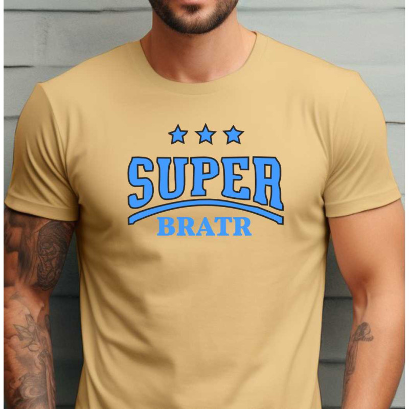 Pánské bavlněné tričko s krátkým rukávem s potiskem: Super bratr. Ideální dárek pro bratra k Vánocům nebo narozeninám. Udělejte bratrovi radost kvalitním tričkem, které bude s hrdostí nosit.