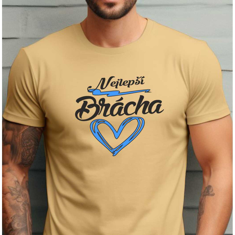 Pánské bavlněné tričko s krátkým rukávem s potiskem: Nejlepší brácha pod srdcem. Ideální dárek pro bratra k Vánocům nebo narozeninám. Udělejte bratrovi radost kvalitním tričkem, které bude s hrdostí nosit.