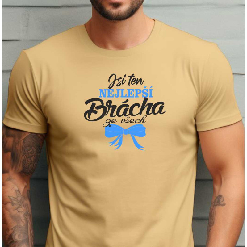 Pánské bavlněné tričko s krátkým rukávem s potiskem: Jsem ten nejlepší brácha ze všech. Ideální dárek pro bratra k Vánocům nebo narozeninám. Udělejte bratrovi radost kvalitním tričkem, které bude s hrdostí nosit.