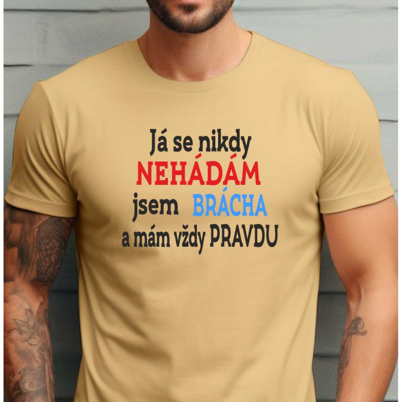 Pánské bavlněné tričko s krátkým rukávem s potiskem: Já se nikdy nehádám jsem brácha a proto mám vždy pravdu. Ideální dárek pro bratra k Vánocům nebo narozeninám. Udělejte bratrovi radost kvalitním tričkem, které bude s hrdostí nosit.