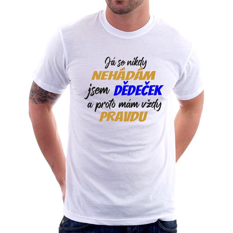Jedním z našich nejoblíbenějších produktů je tričko pro dědu - Já se nikdy nehádám jsem dědeček a proto mám vždy pravdu. Jedná se o originální tričko s vtipným nápisem, které je vyrobeno z kvalitní bavlny a má pohodlný střih.