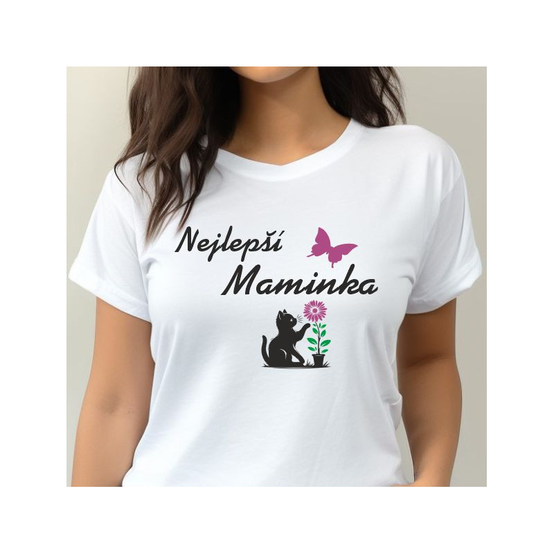 Chcete své mamince darovat něco výjimečného? Dámské tričko *Nejlepší maminka s kočičkou* je skvělým dárkem, který spojuje lásku k mamince a její oblíbené mazlíčky. Jemný a pohodlný materiál zaručuje, že se v něm bude cítit příjemně každý den, a stylový potisk jí připomene, jak moc pro vás znamená.