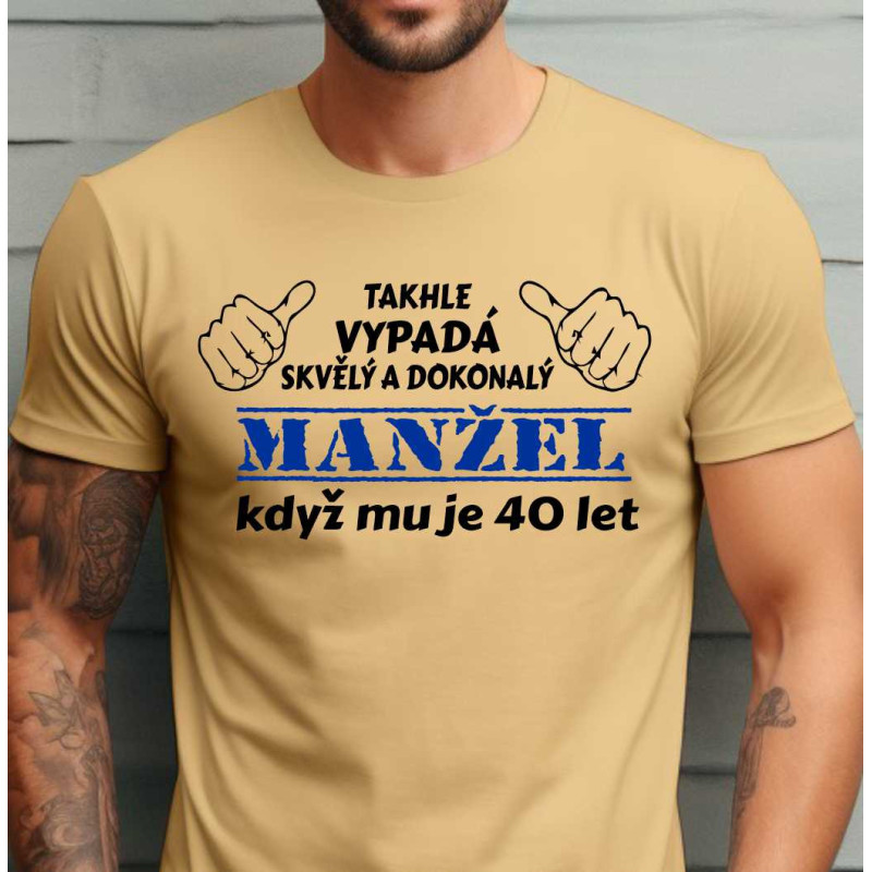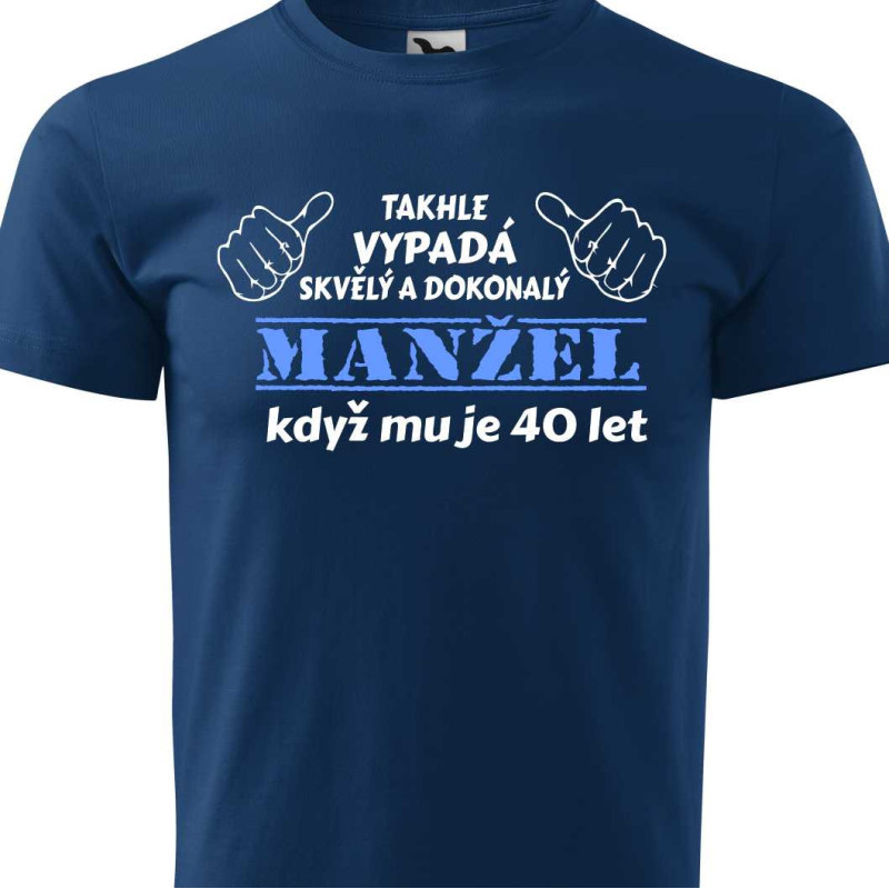 Hledáte vtipný dárek k 40. narozeninám pro manžela? Pánské tričko s vtipným potiskem: Takhle vypadá skvělý a dokonalý manžel, když mu je 40 let je skvělá volba na dárek k 40. narozeninám. Udělejte radost s kvalitním tričkem s humorným nápisem, které bude nosit s radostí.