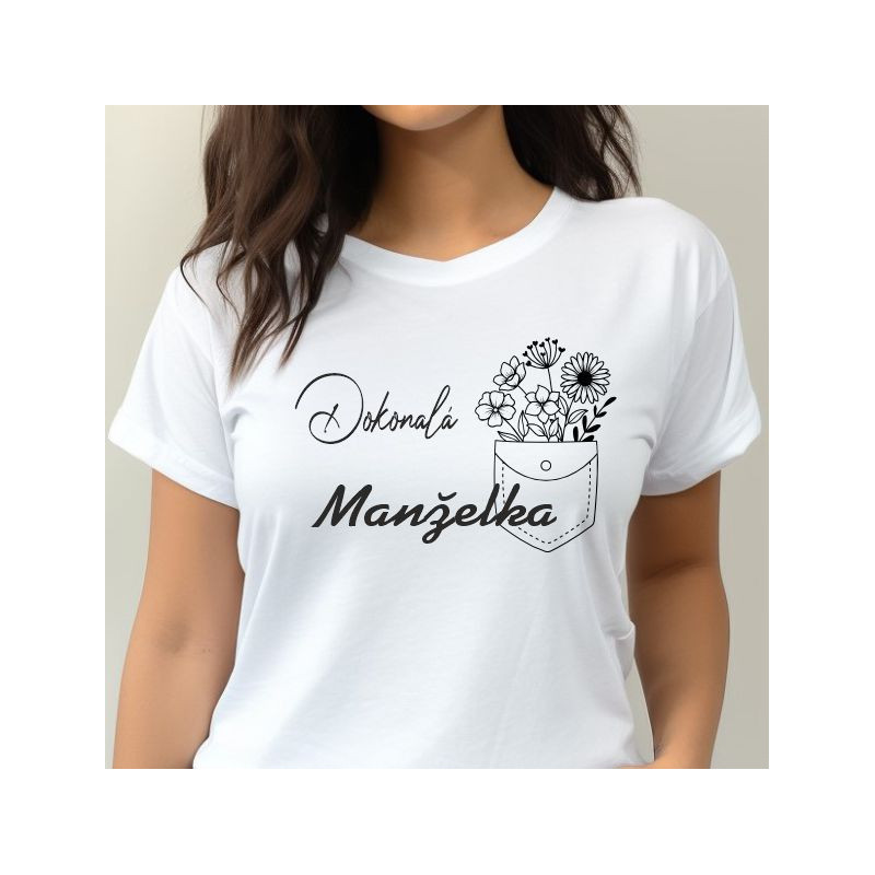 Ukažte své manželce, jak moc si vážíte všeho, co pro vás dělá. Tričko "Dokonalá manželka" s květinovým motivem je více než jen oblečení – je to vyznání lásky, které může nosit každý den.