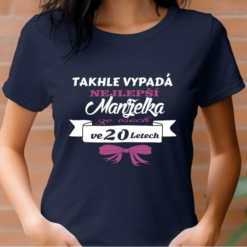 Hledáte dárek k 20 narozeninám pro manželku? Dámské tričko s vtipným potiskem: Takhle vypadá nejlepší manželka ze všech ve 20 letech je originálním a krásným dárkem k 20. narozeninám. Tričko s potiskem vytvoří příjemnou náladu, vykouzlí úsměv a bude vzpomínkou na oslavu 20. narozenin. Udělejte radost manželce tímto tričkem s velice pěkným narozeninovým nápisem.
