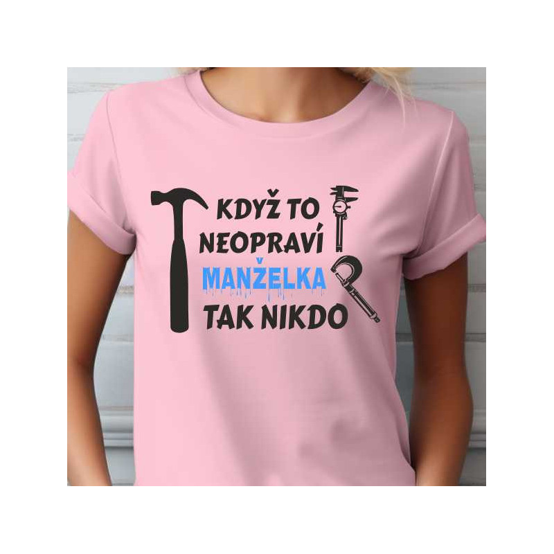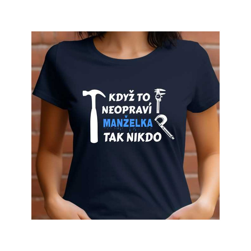 Hledáte dárek, který vaší manželce vykouzlí úsměv na tváři a zároveň ocení její všestranné dovednosti? Naše dámské tričko s vtipným nápisem "Když to neopraví manželka, tak nikdo" je trefou do černého! Tento kousek oblečení není jen módním doplňkem, ale i upřímným uznáním jejích schopností.