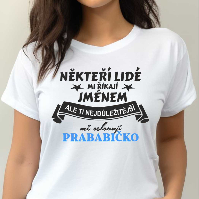 Hledáte originální dárek pro svou prababičku k narozeninám, Vánocům nebo svátku? Naše tričko s vtipným nápisem "Někteří lidé mi říkají jménem, ale ti nejdůležitější mně oslovují prababičko" je trefou do černého!