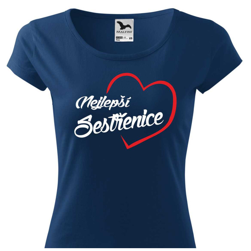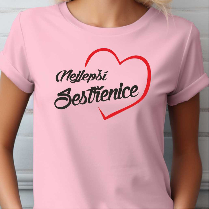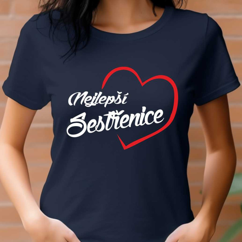 Dámské tričko s potiskem: nejlepší sestřenice v srdíčku. Tričko je skvělé jako dárek k Vánocům nebo narozeninám pro sestřenici. Udělejte ji radost tímto kvalitním bavlněným tričkem krteré bude nosit s radostí.