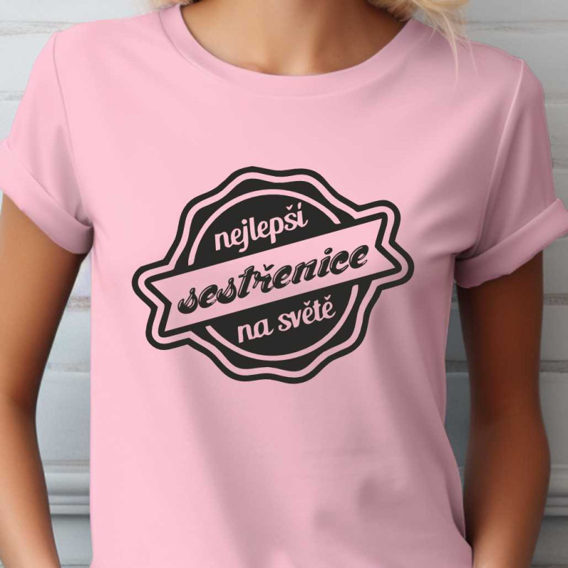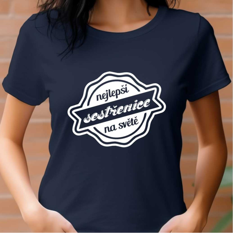 Dámské tričko s potiskem: Nejlepší sestřenice v ornamentu. Tričko je skvělé jako dárek k Vánocům nebo narozeninám pro sestřenici. Udělejte ji radost tímto kvalitním bavlněným tričkem krteré bude nosit s radostí.