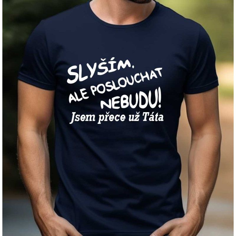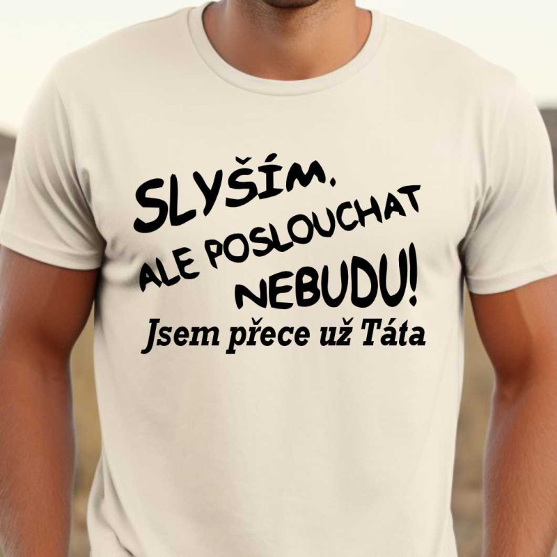 Hledáte originální dárek pro tátu, který má smysl pro humor? Tohle tričko s vtipným nápisem "Slyším, ale poslouchat nebudu, jsem přece už táta" je přesně to, co potřebujete!