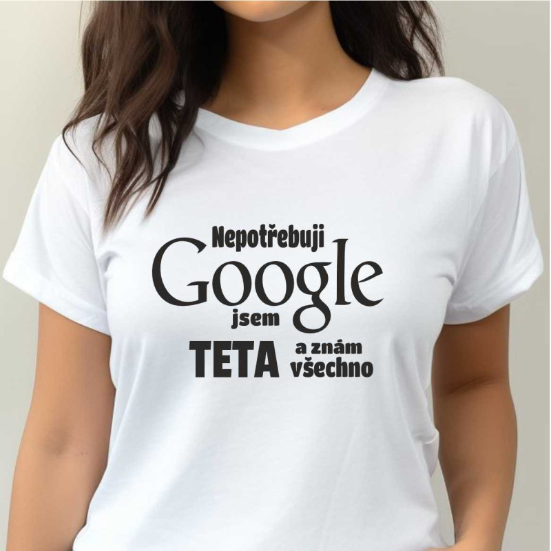 Udělejte radost své tetě tímto vtipným dámským tričkem s krátkým rukávem "Nepotřebuji Google jsem teta a znám všechno." Toto tričko je ideálním dárkem k Vánocům, narozeninám nebo jakoukoli jinou příležitost, kde chcete ukázat své tetičce, jak moc ji máte rádi.